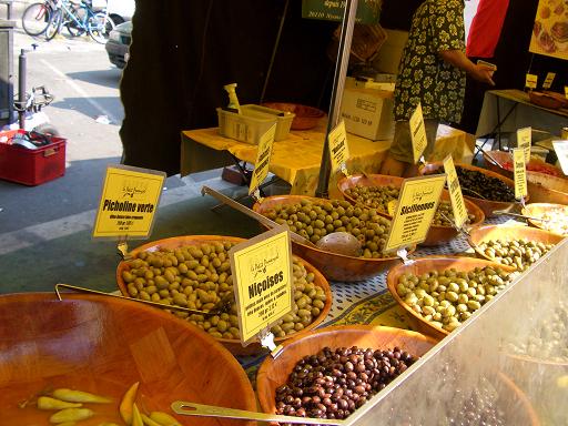On peux acheter les légumes, des fromages, des fleurs, des vins ,des olives , des saucissons, des poisson et des vêtements.