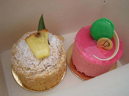 C'est le gateau framboise avec le mouse au macha et le gateau d'annas avec le coco.