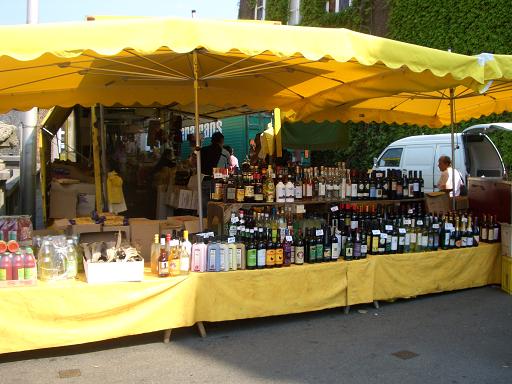 野菜・花・チーズ・ワイン・オリーブ・ソセージ・魚・下着・服・・・など売ってます。